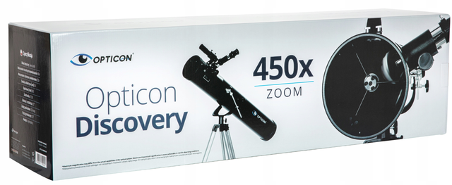 Телескоп Discovery оснащений трьома змінними окулярами та лінзою Барлоу, що подвоює діапазон доступних збільшень. Оптична труба встановлена на повнорозмірному штативі з головкою AZ, яка була розроблена для спостерігачів-початківців. Це робить пошук об'єктів у небі надзвичайно простим. Додатковий приціл із хрестовиною (шукачем) полегшує точне прицілювання. Після використання лінзи, що входить в комплект, телескоп можна використовувати як зорову трубу для спостереження за природою і ландшафтом (спостереження за птахами, літаками, віддаленими будинками і т. д.).